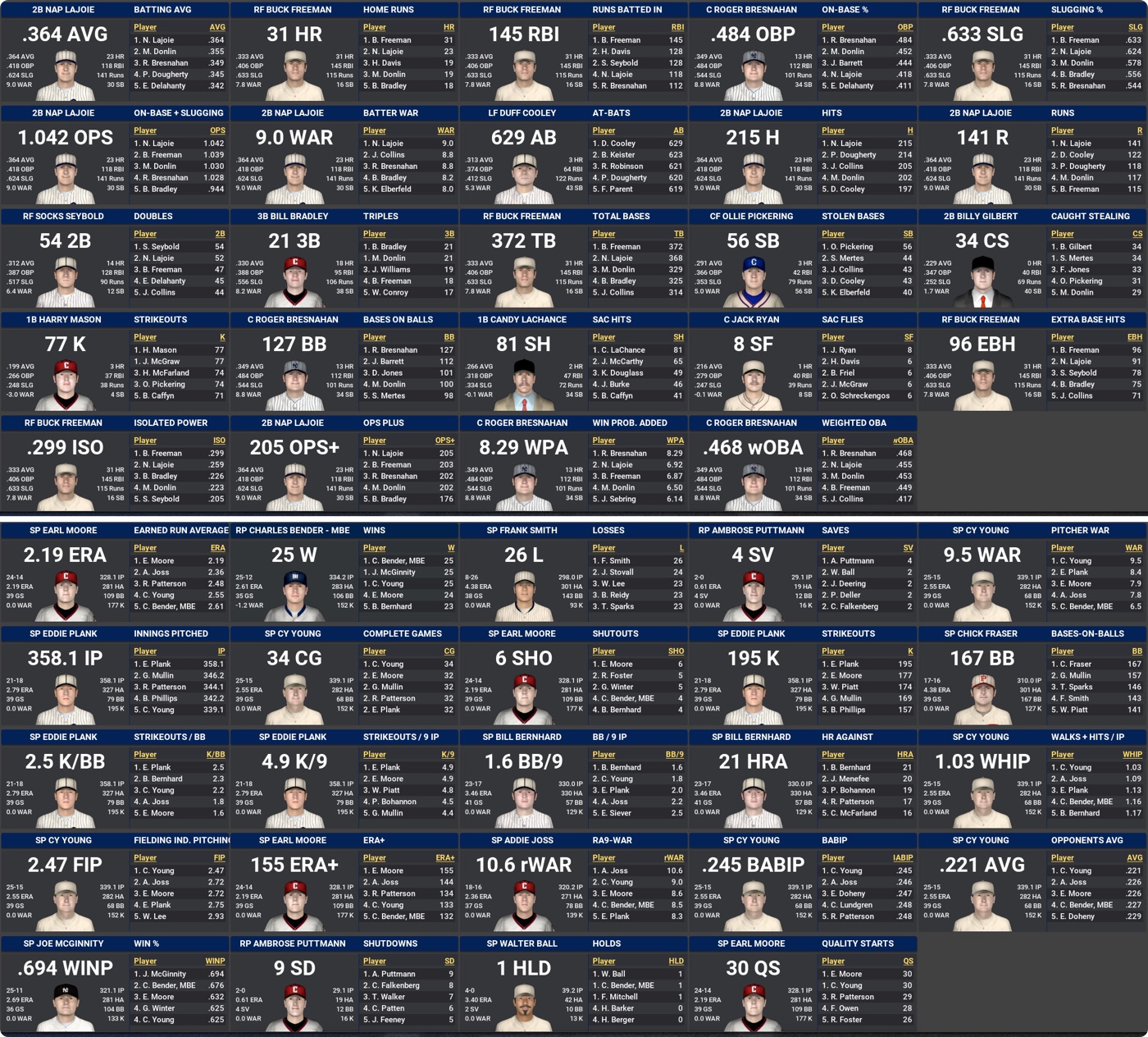 Grant Johnson leads the NeL fraternity with 6.6 WAR, with Regino Garcia, Carlos Moran and Alfredo Cabrera registering 4 or more. Rube Foster’s 5.9 is the best among the pitchers.