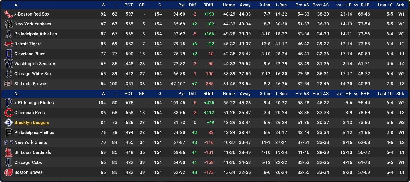 The Pirates are in control pretty much throughout and put the race beyond doubt with a long win streak right at the end of August before clinching in early September with a 2-1 win against us in Brooklyn.
