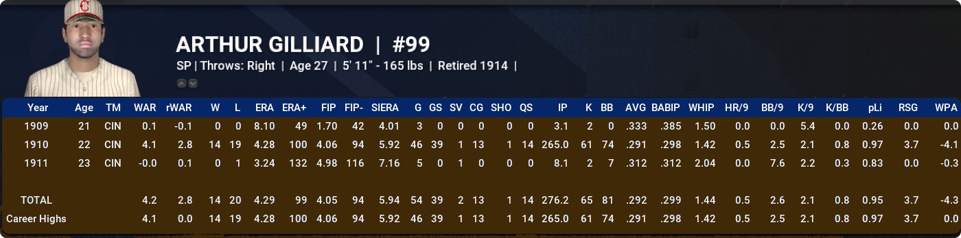 ARTHUR GILLIARD: Always somewhat of a questionable inclusion IMHO given the brevity of his career, and he is accordingly far from prominent in this timeline.